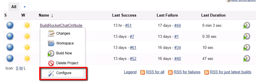 To configure this configure the ‘BuildRocketChatOnNode’ job again…