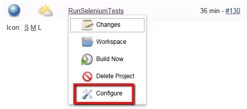 1. Modidfy the RunSeleniumTest project by clicking on ‘Configure’ for the project