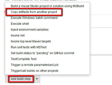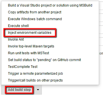 Now we have the file containing the host name available to this job. Next we need this job to process the file at run time. For this we need to ‘Inject environment variables’. So we’ll add another build step for ‘Inject environment variables’: