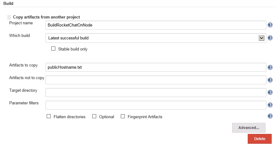 Project name: BuildRocketChatOnNode Which build: Latest successful build Artifacts to copy: publicHostname.txt