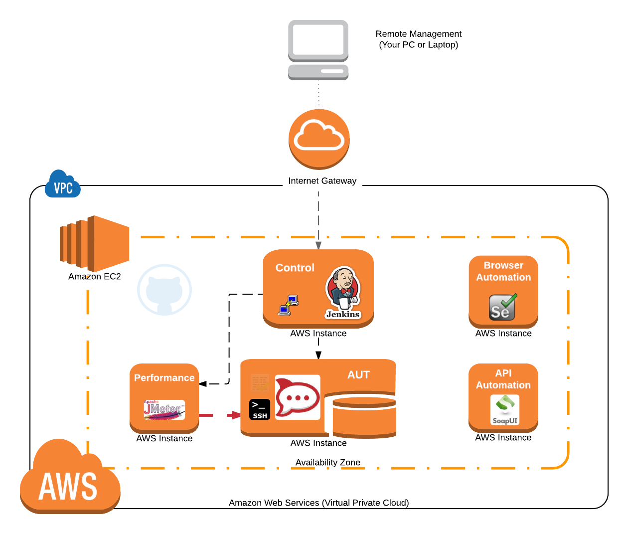 To acheive this we’ll need to have these pieces in place on our test automation rig: